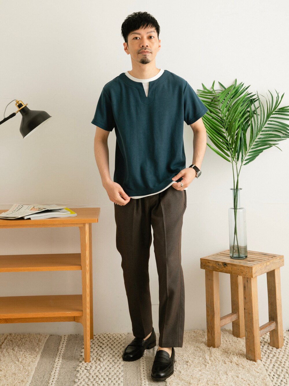 horiguchi(URBAN RESEARCH ROSSO)のTシャツ/カットソー「フェイクレイヤード キーネックTシャツ」を使ったコーディネート