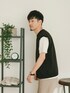 【ITEMS】 ニットベストコーデのブラックを使用して、 スラックスと合わしてきれいめカジュアルで!