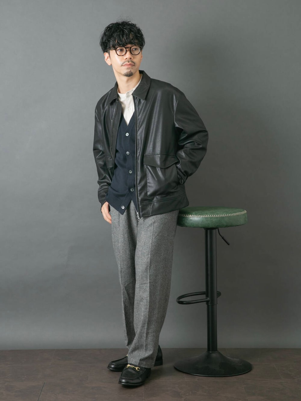 男らしいスタイルになりがちな素材のアウターをキレイめなアイテムと合わせてスッキリとした大人な印象にまとめました! ●アウター(Lサイズ)・・・軽くて格好良くキマるレザー風ジャケット! デニムからスラックまで幅広く活躍。 ●カーディガン(Lサイズ)・・・昨年すぐに完売した機能性カーディガン! アウターの中に入れるには最適な薄さです。 ●シャツ(Lサイズ)・・・機能性でコスパ抜群!! あらゆるコーディネートにマッチして秋冬に大活躍する万能シャツ。 ●パンツ(Lサイズ)・・・ワイドだけどキレイにキマる人気デザイン! 厚すぎずコーディネートに取り入れるだけで上品で季節感あるスタイルに◎