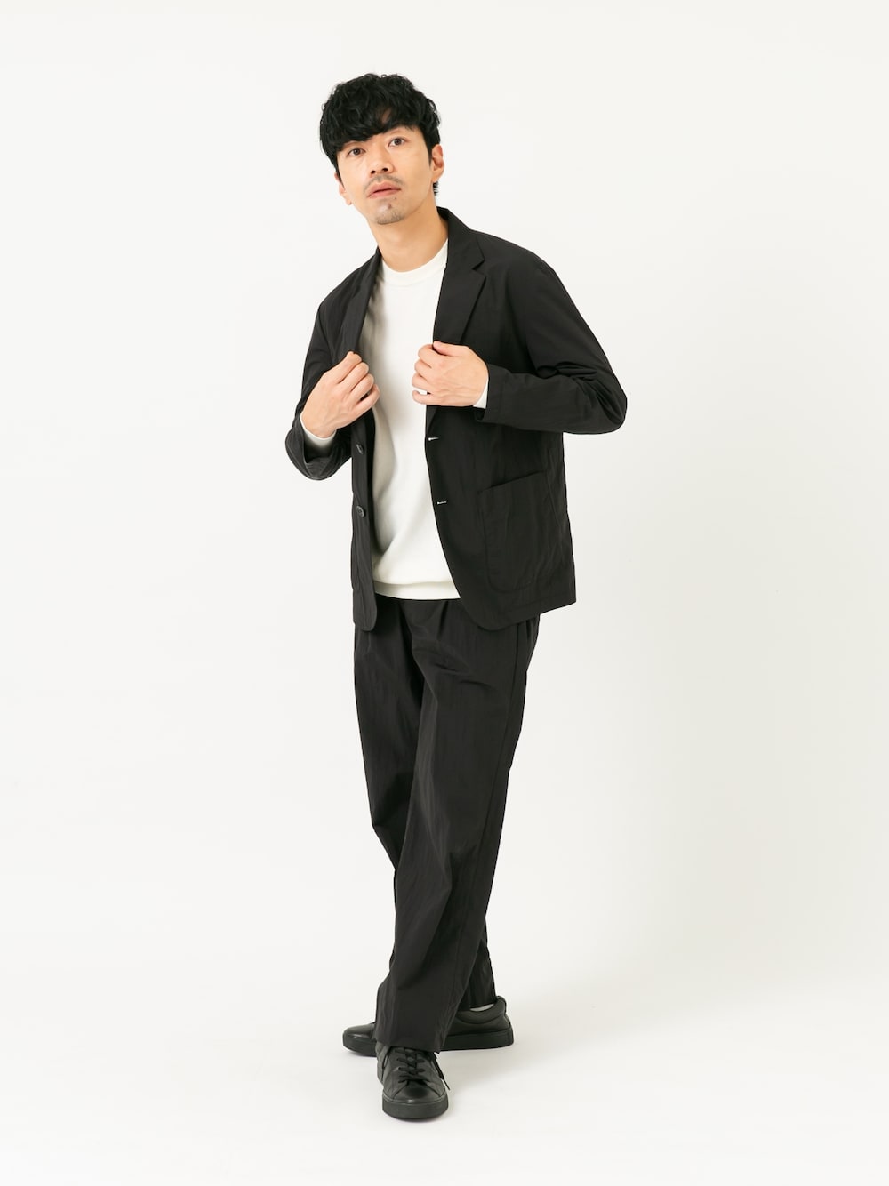 コピー用紙の25倍以上の強度のある軽くて丈夫なナイロン素材のセットアップスタイル! 抜け感もある普段使いに最適なアイテムです。 ●アウター(Mサイズ)・・・細すぎないオンオフどちらでも大丈夫なシルエットです。 ●ニット(Mサイズ)・・・スタンダードなスッキリシルエットです。 スウェットライクでロンT感覚で着られるニット! ●アウター(Mサイズ)・・・やや太さがありながらジャケットにも合うバランス。 カジュアルにも使いやすいシルエットです!