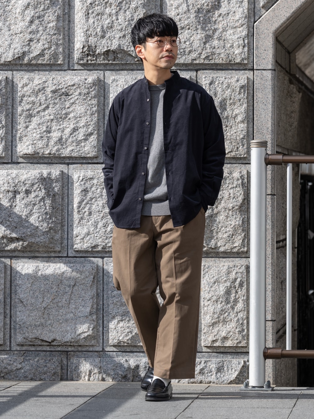 きれいめ見えする細畝のコーデュロイシャツにインナー使いしやすいニットを合わせました。冬チノスラックスを合わせて少しカジュアルに。 カラーは上半身はグレーの濃淡でグラデーションにして落ち着いたベージュで明るさを出しました。 シャツはリラックスあるサイズ感で中に薄手のニットを入れてもかさばりません。 生地自体は分厚くないので冬アウターの下に着るのも雰囲気アップでオススメです! ニットは綿カシミアでチクチク感がゼロで暖かく快適◎ 良い意味でニット感が無いので軽い羽織のインナーとしても活躍します。 ーーーーーーーーーー サイズ感・・・ベーシック スタイル・・・きれいめカジュアル 色合わせ・・・3トーン ーーーーーーーーーー