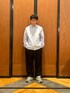 こんにちは 以前着用したストライプロングスリーブシャツのLサイズを着用してみました。 だいぶゆったりなサイズ感になります! 1枚でも大人っぽい雰囲気出るのでおすすめです。 着丈はドローコード付いてるので調節できます!