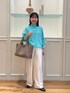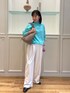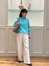カラーが目を惹くニット! 程よい、ゆるっと感と肉厚感がないので、アウターを羽織りやすかったり、インナーシャツなどもレイヤードしやすい仕様となっています。 ウール100%で暖かくて、一枚でさまになるニットです。 白パンツで爽やかなコーデに。 パンツはとろみ感のある、ウエストゴムのパンツ。 ポリウレタンも5%もあり、伸縮性や裏地もあるため、普段履きにさくっとはけるのがオススメポイントです。 お仕事着から普段着まで幅広く使えるコーディネートです。