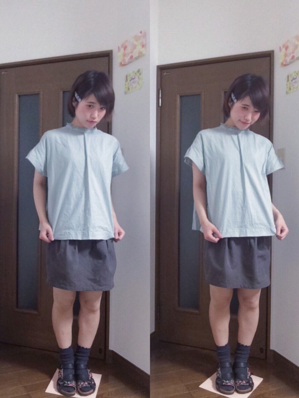 一目惚れのシャツです。襟がとっても可愛いです。🙆💕 髪留めピンは、福岡に住んでいた時に 買いました。 ソックス:靴下屋 instagram→ hostsnk