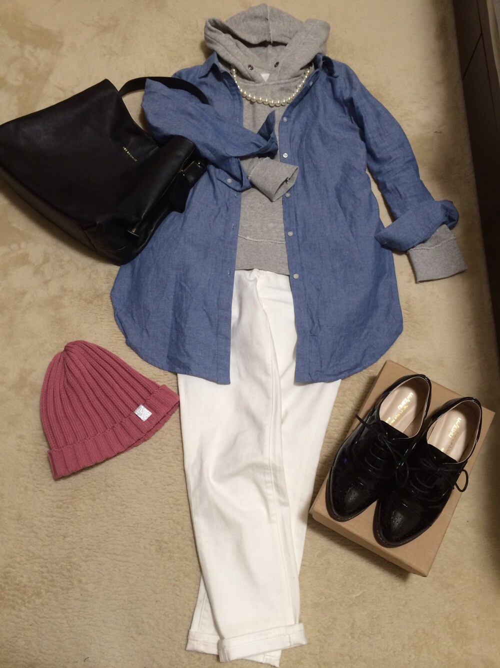 シャツ→ROSSO バッグ→SEE BY CHLOE シューズ→Netstar ニットキャップ→GU ネックレス→apart by lowrys ネックレスはニットワンピにセットでついてたもの☺︎