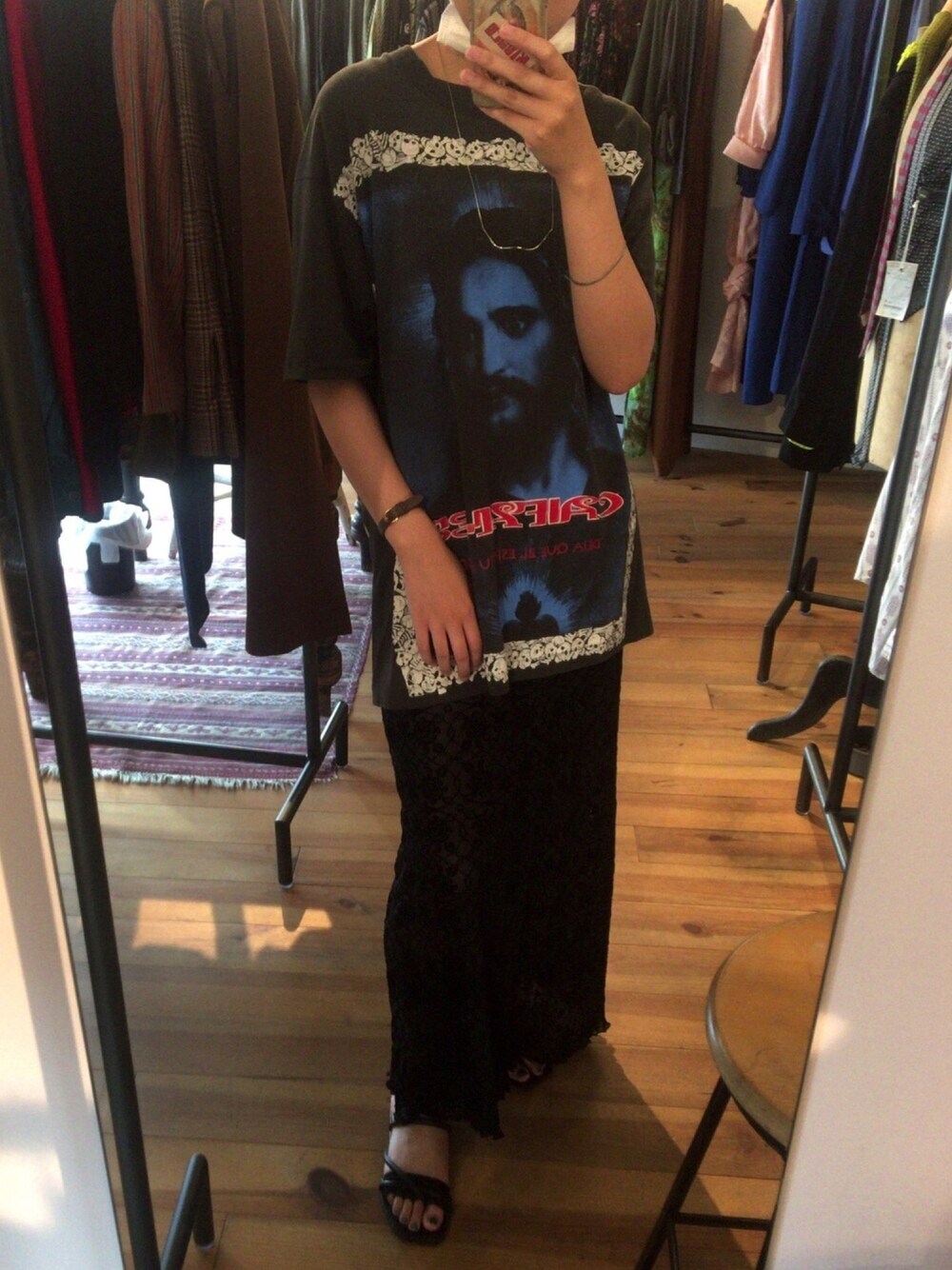 tee:OTOE dress:DEPT 指輪忘れたし今日の写り悪い。。 下のドレスはシースルーデザインで透けるのに全く伝わらない。。