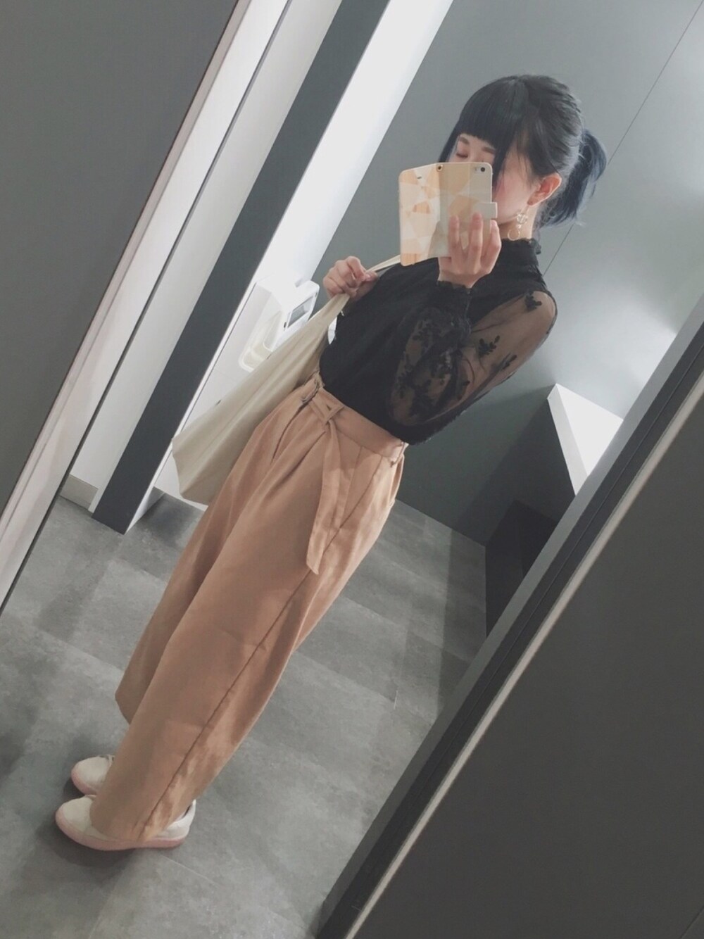 とぎぃのシャツ/ブラウス「レース地ハイネックプルオーバー」を使ったコーディネート