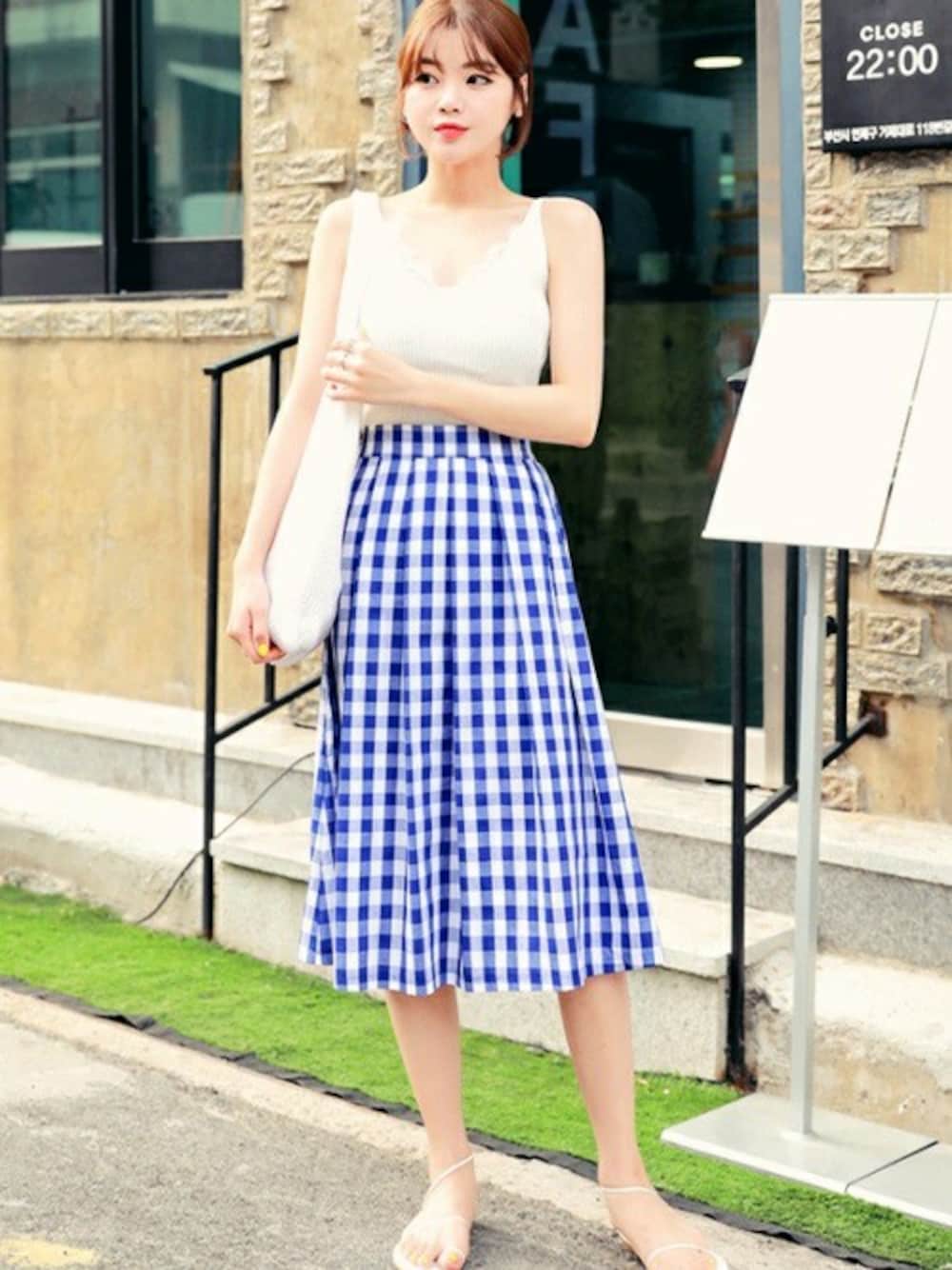 HOTPINGのスカート「バックゴムギンガムチェックスカート」を使ったコーディネート