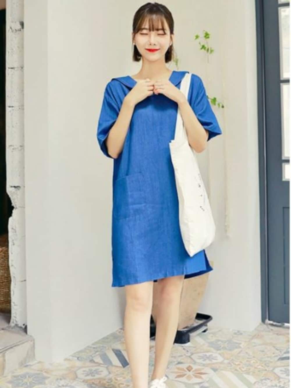 HOTPINGのワンピース「サイドポケットセーラーカラーデニムワンピース」を使ったコーディネート