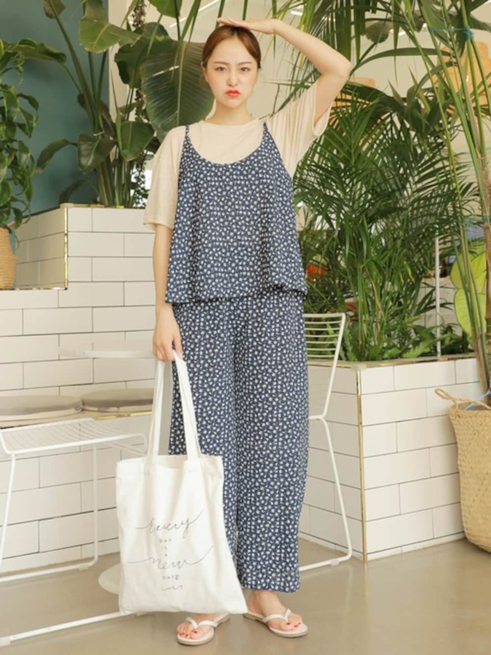 HOTPINGのセットアップ「小花柄ビスチェ&ワイドパンツSET」を使ったコーディネート