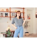 HOTPINGのその他トップス「Vネックギンガムチェックボタンブラウス」を使ったコーディネート