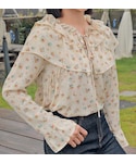 HOTPINGのTシャツ/カットソー「レトロフラワーフリルブラウス」を使ったコーディネート