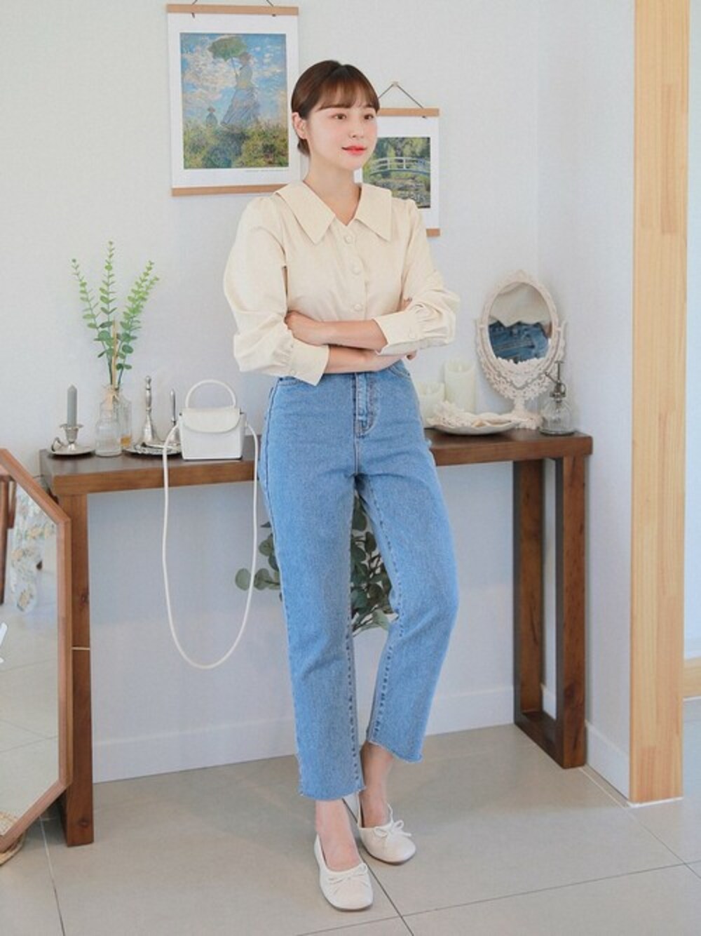 ビックカラーネックで小顔効果バツグンの クリームカラーのくるみボタンブラウスに ウォッシュのかかったストレートデニムをコーデし ホワイトのミニバッグとリボンフラットシューズを合わせると 女の子らしさ満点のデニムコーデの完成 🙆🏻 ◇ ビックカラーネックくるみボタンコットンブラウス ¥2,830(税込) 全2色 https://bit.ly/2F8h6Ky *----*----*----*----*----*----*----*----* HOTPINGでは可愛くておしゃれな💞 新作商品が毎日アップデート中🆕 新作商品は20%OFFです~🐰 HOTPINGのURLに今すぐアクセス↓↓ http://hotping.jp Instagram : hotping_japan Twitter : @HotpingJ Facebook : @hotpingjapan Ameba : hotping-japan