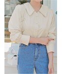 HOTPINGのシャツ/ブラウス「ビックカラーネックくるみボタンコットンブラウス」を使ったコーディネート
