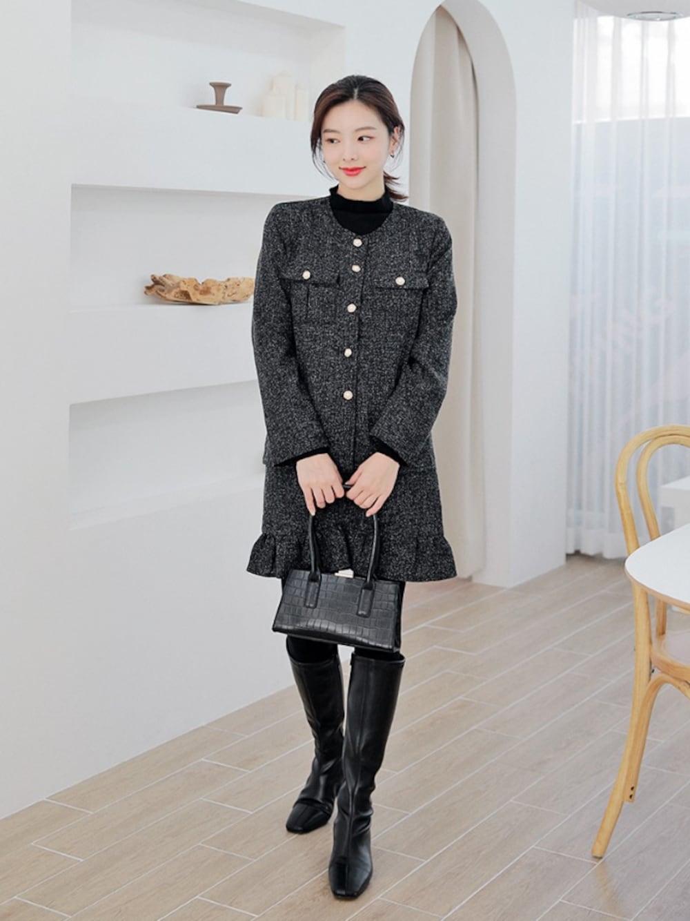 パールボタンがポイントの高級感漂うノーカラージャケット& フレアヘムミニスカートのツイードセットアップに、 ハイネックのベーシックTシャツをコーデし ブラックのミニバッグとロングブーツを合わせると お呼ばれルックにもピッタリな高級感漂うコーデの完成 🙆🏻 ◇ パールボタンノーカラージャケット ¥2,980(税込) 全1色 https://bit.ly/3n70MKh ◇ ウエストゴムフリルヘムミニスカート ¥1,980(税込) 全1色 https://bit.ly/3bhDL59 *----*----*----*----*----*----*----*----* HOTPINGでは可愛くておしゃれな💞 新作商品が毎日アップデート中🆕 新作商品は20%OFFです~🐰 HOTPINGのURLに今すぐアクセス↓↓ http://hotping.jp Instagram : hotping_japan Twitter : @HotpingJ Facebook : @hotpingjapan Ameba : hotping-japan