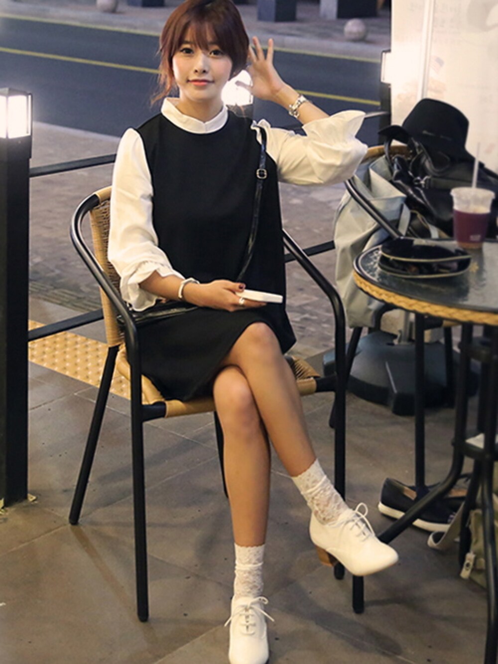 HOTPINGのワンピース「ブラウスレイヤード風ワンピース」を使ったコーディネート