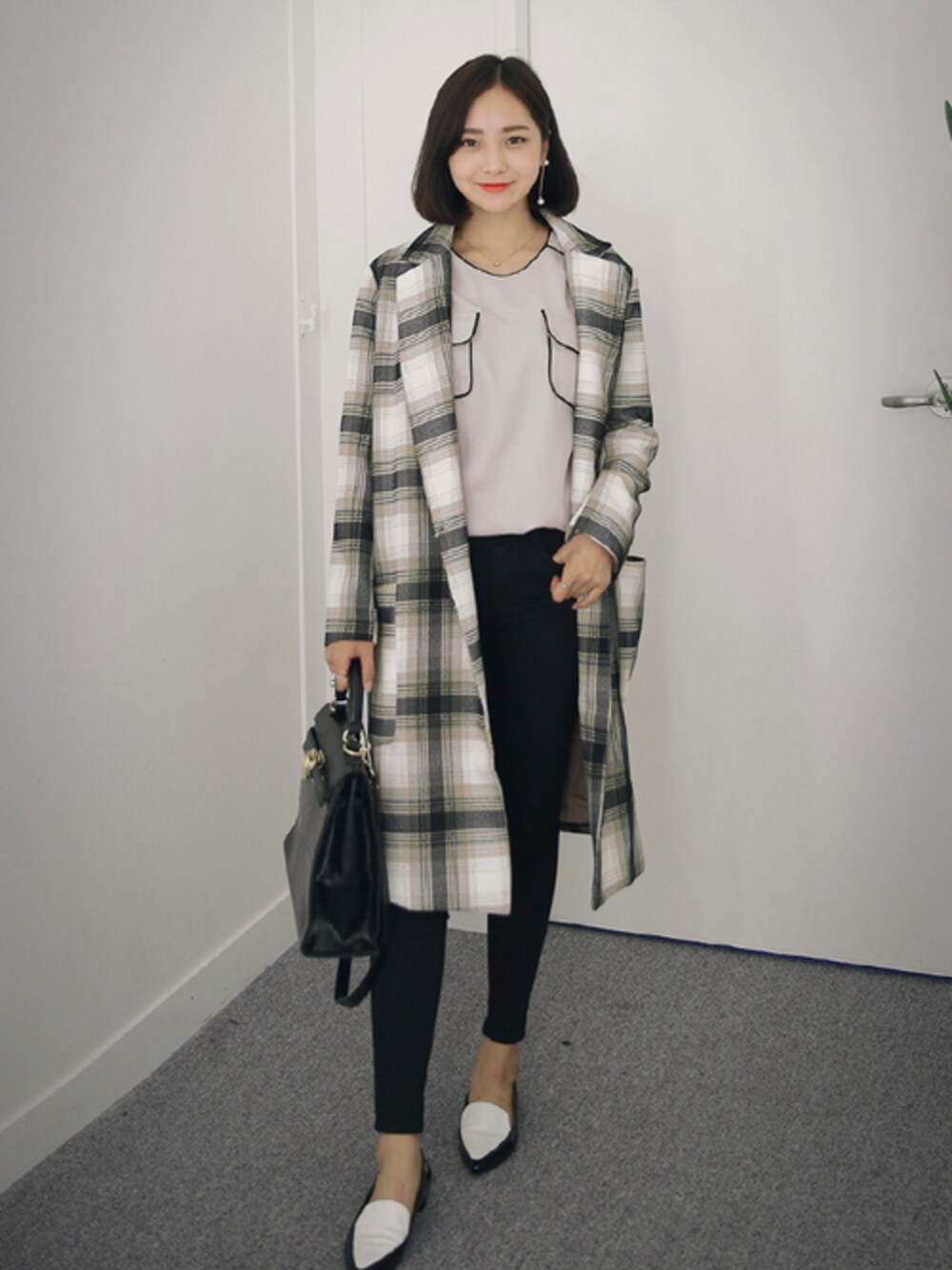 HOTPINGのチェスターコート「ビッグチェック柄ロングジャケット」を使ったコーディネート