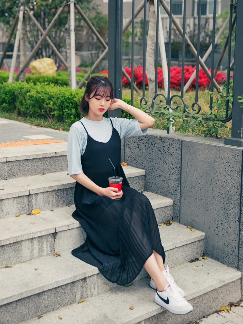 HOTPINGのワンピース「プリーツキャミワンピース」を使ったコーディネート