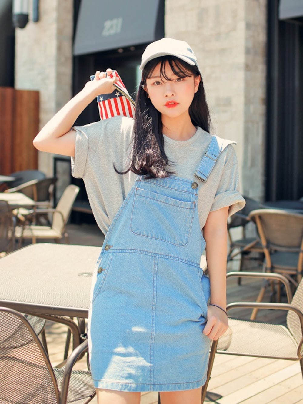 HOTPINGのサロペット/オーバーオール「フロントビックポケット付デニムサロペットスカート」を使ったコーディネート