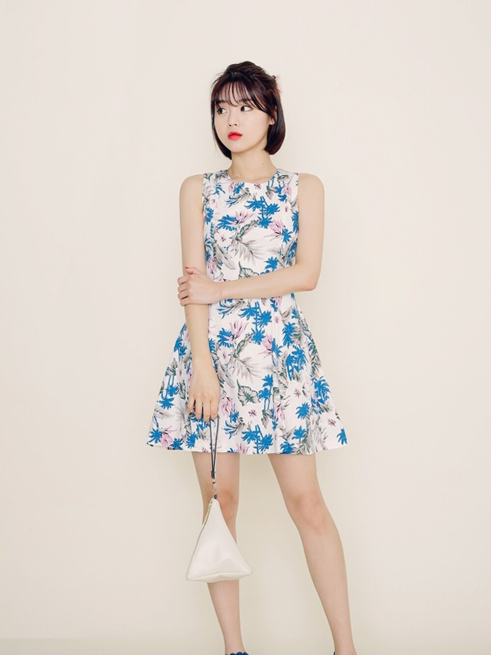 HOTPINGのワンピース「トロピカルフラワーノースリーブワンピース」を使ったコーディネート