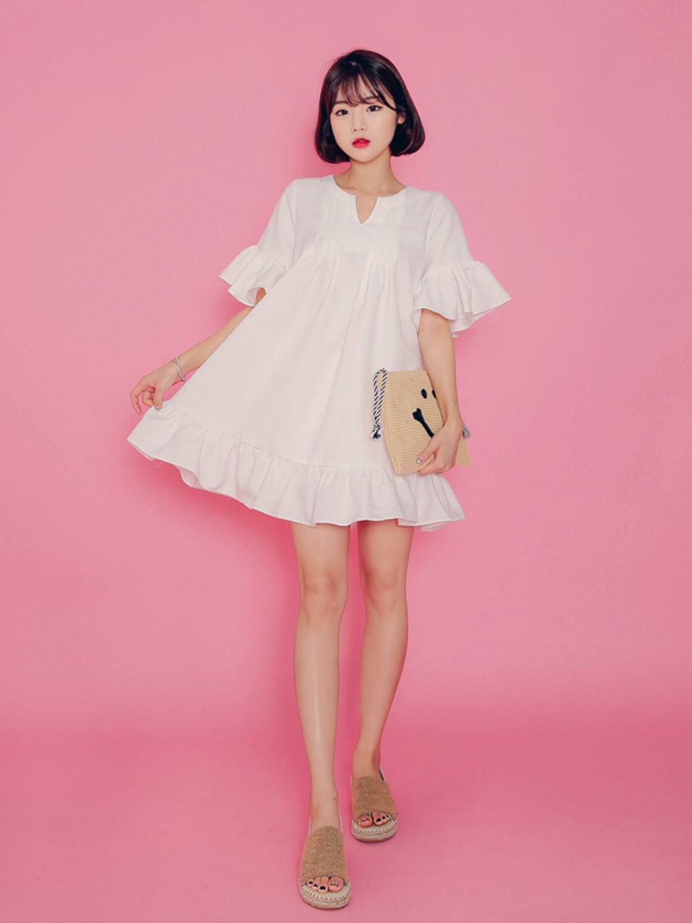 HOTPINGのワンピース「フロントタックAラインフリルワンピース」を使ったコーディネート