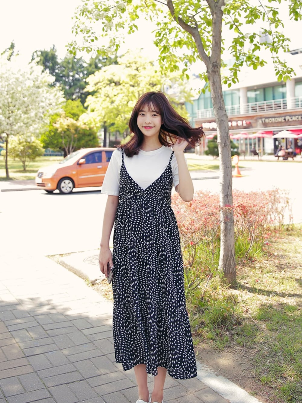 HOTPINGのワンピース「ロング丈Vネックパターンワンピース」を使ったコーディネート