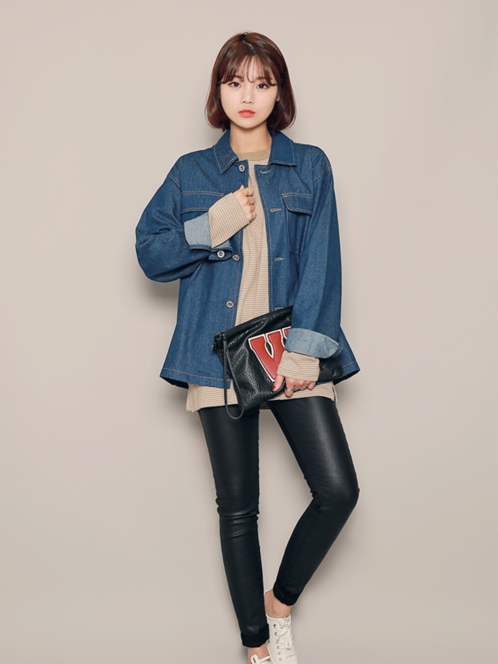 HOTPINGのデニムジャケット「ルーズフィットブルーデニムジャケット」を使ったコーディネート
