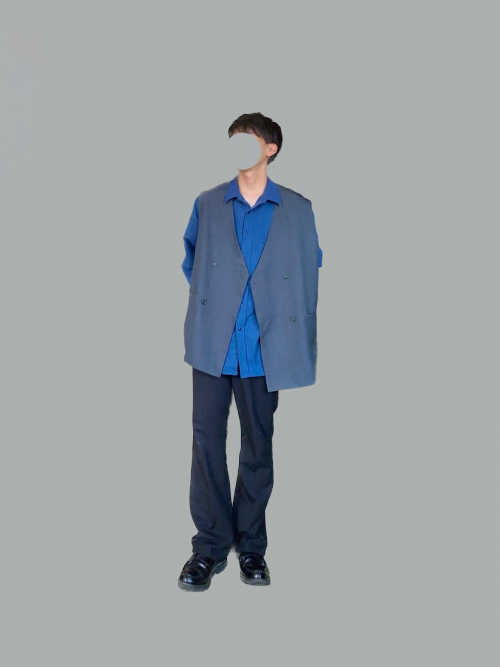 ジレベストを使った綺麗めカジュアルコーデ🤩 上半身は青、下半身は黒で揃えてコーデにまとまりを! ジレベストとシャツの組み合わせは簡単に大人っぽく見せられます またフレアパンツとローファーの相性は抜群で、色も揃えているので脚長効果が絶大です! Instagram、TikTokもよろしくお願いします🙇♀️