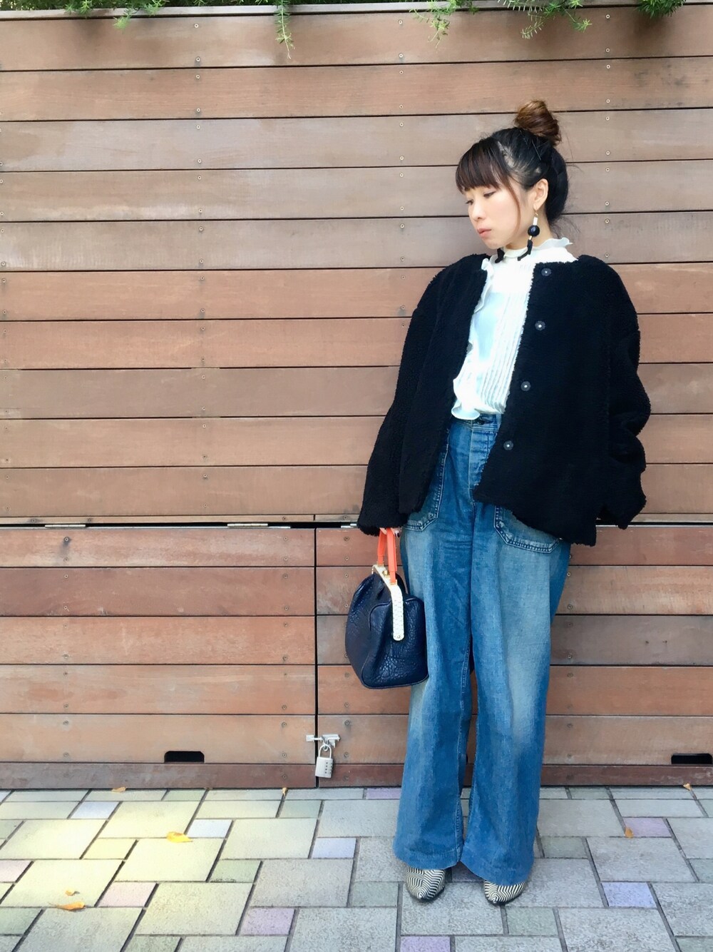 ちょっとガーリーなシャツはデニムでカジュアルダウンしました。 アウターのボアブルゾンも、チビなのでややオーバーサイズ気味なるので上手いことエフォートレスに:)