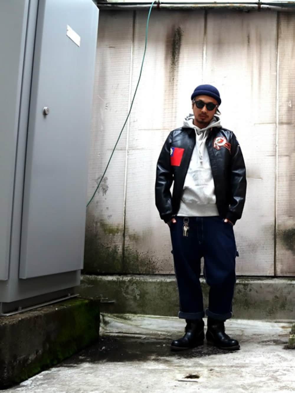 HOUSTON OFFICIALのミリタリージャケット「#8186 PATCH A-2 LEATHER JACKET(FLYING TIGER)」を使ったコーディネート