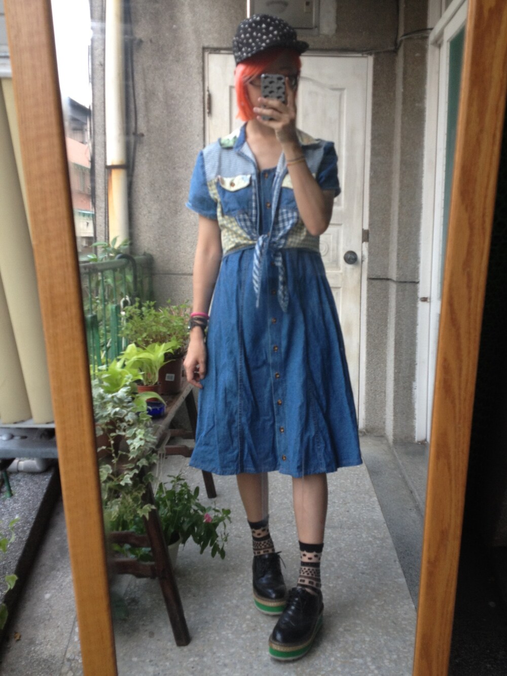 帽:購自planet 洋裝:古着(購自大阪) 襪:購自淘寶 鞋:購自sadonsirius (忘記燙衣服了…;´Д`A)