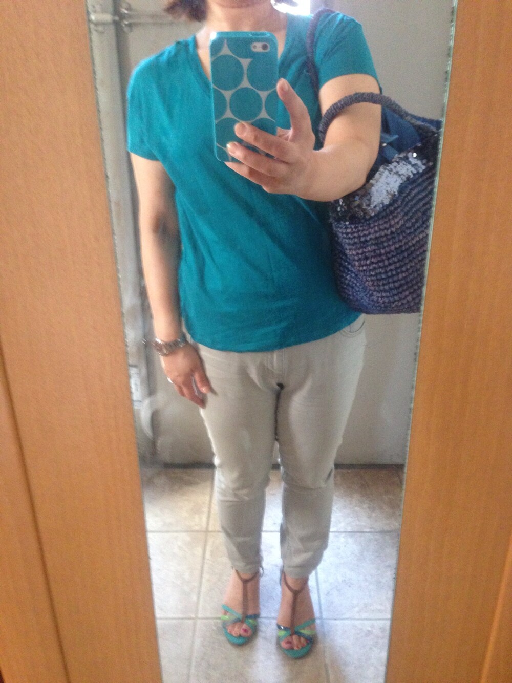 Tシャツ:ZARA パンツ:UNIQLO サンダル:NO ブランド 大好きなブルーグラデーションコーディネート♪