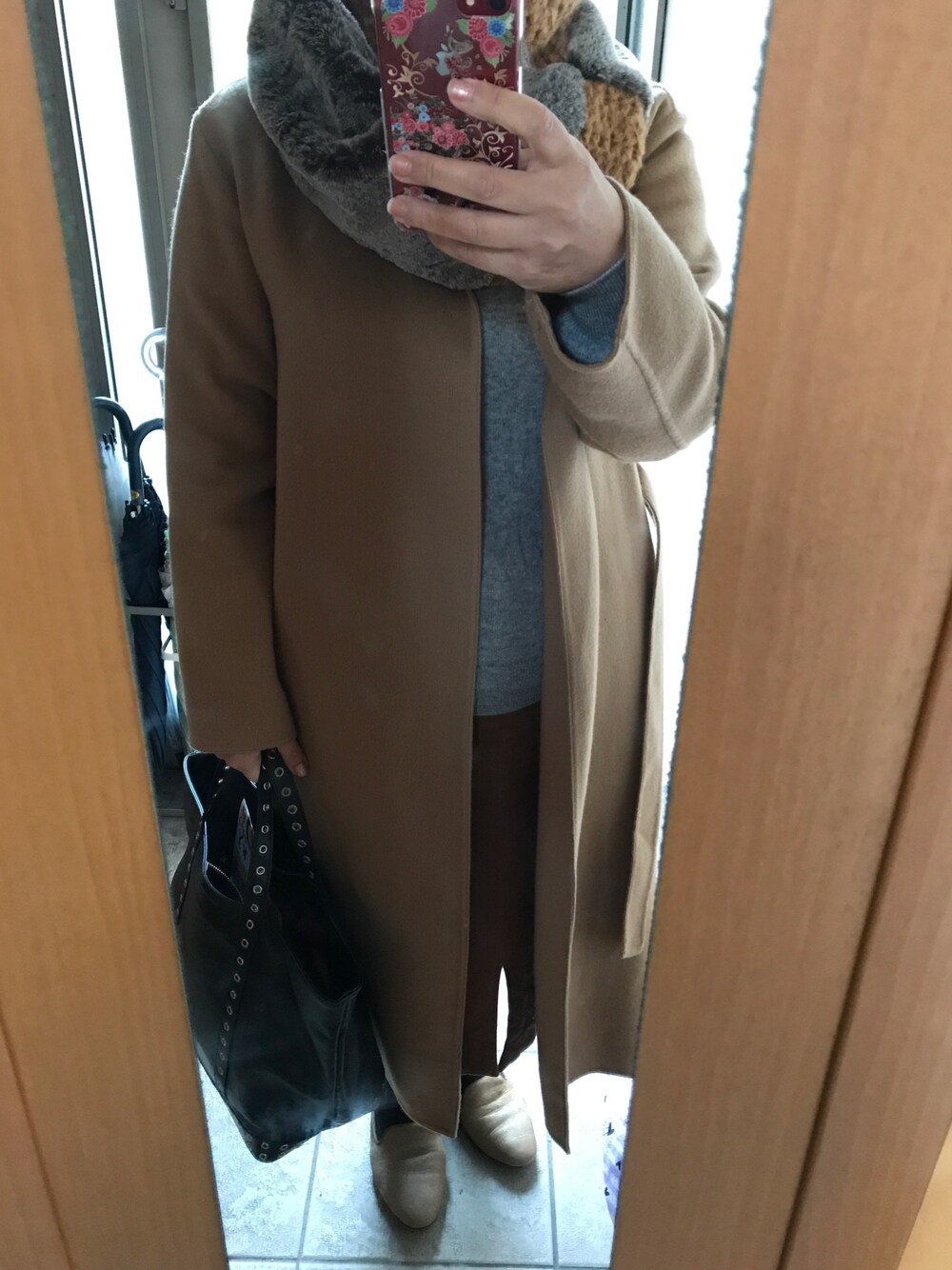 もりひろこのストール/ショール「フェイクファーニットスヌード」を使ったコーディネート