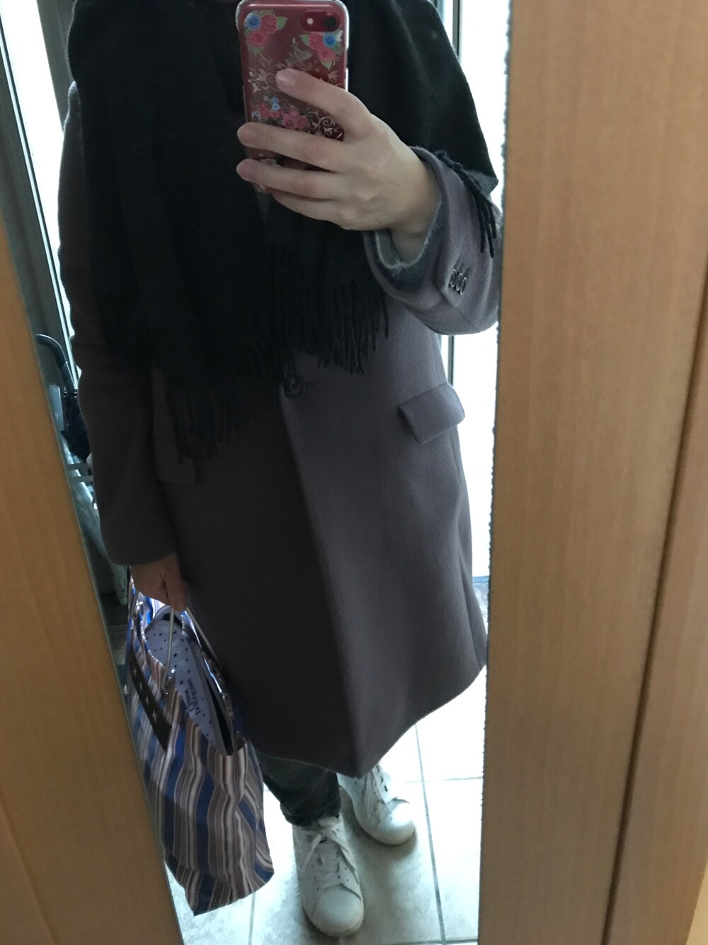 ☔️予報☔️ 足元はスタンスミスで対策 今日はニット×デニム カジュアルDAY🎶