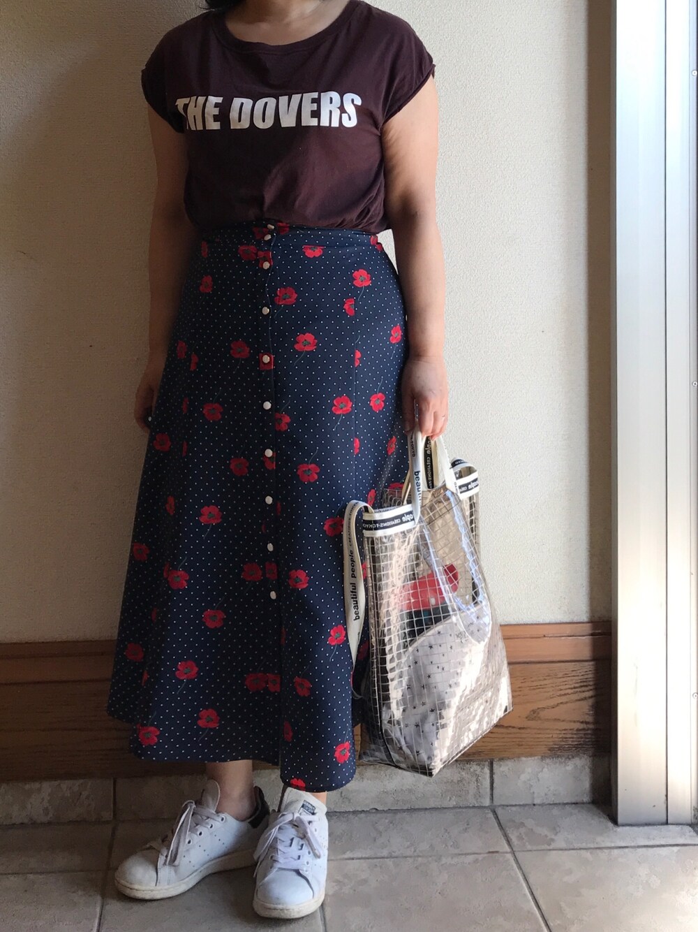 ★今日のコーデ★ 午後はムスメっちの家庭訪問🏠 半休なので 少しショッピングに行く予定の ウキウキコーデ😘 LOGO T×フェミニンskirt カジュアルMIX💟
