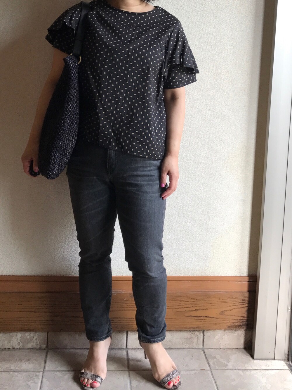 ニュアンスの違う all black フリルブラウスが甘いので 甘辛MIX Instagram @hiroko_plus