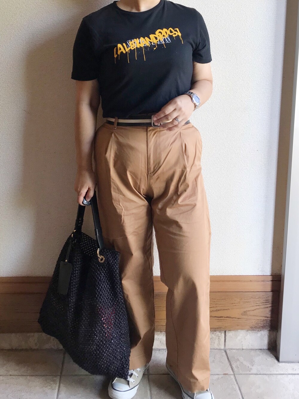 ★今日の通勤コーデ★ black × brown T shirt ×pants