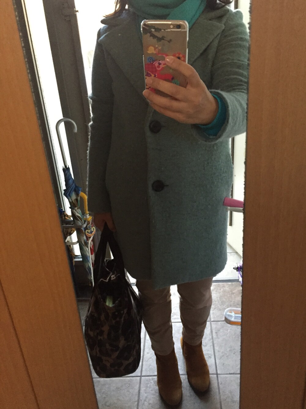 去年購入したミラオーウェンのチェスターコートは合わせやすくてお気に入りデス。 ブルー×ベージュはこれまでなかった組み合わせ! 新鮮ですo(^▽^)o