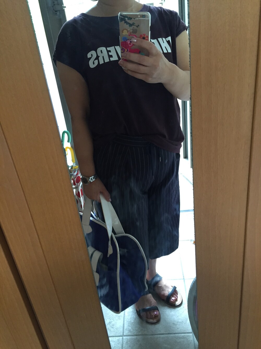 ロゴT & サンダル 新調❤️ 今日の夜はビアガーデン🍺なんで 楽チンスタイル(^O^) んでも、肌寒いから 会社に常備してあるカーディガン 着ていくことになるでしょう。