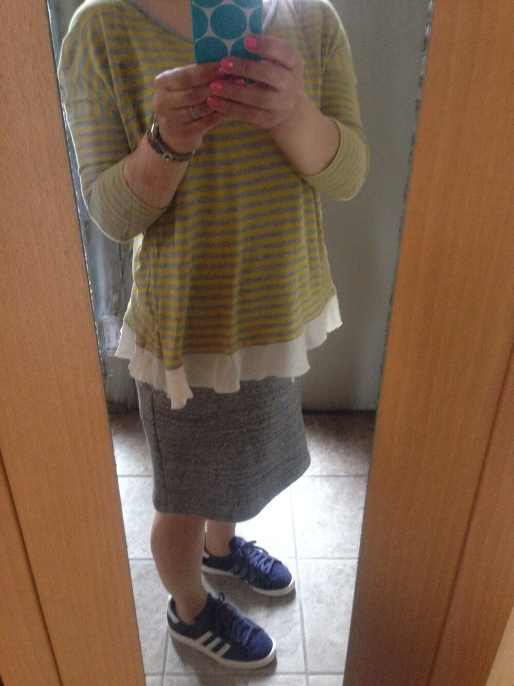 シャツ:ノーリーズ スウェットスカート:バンヤードストーム スニーカー:アディダス 楽チン、かわゆすコーディネート🎶