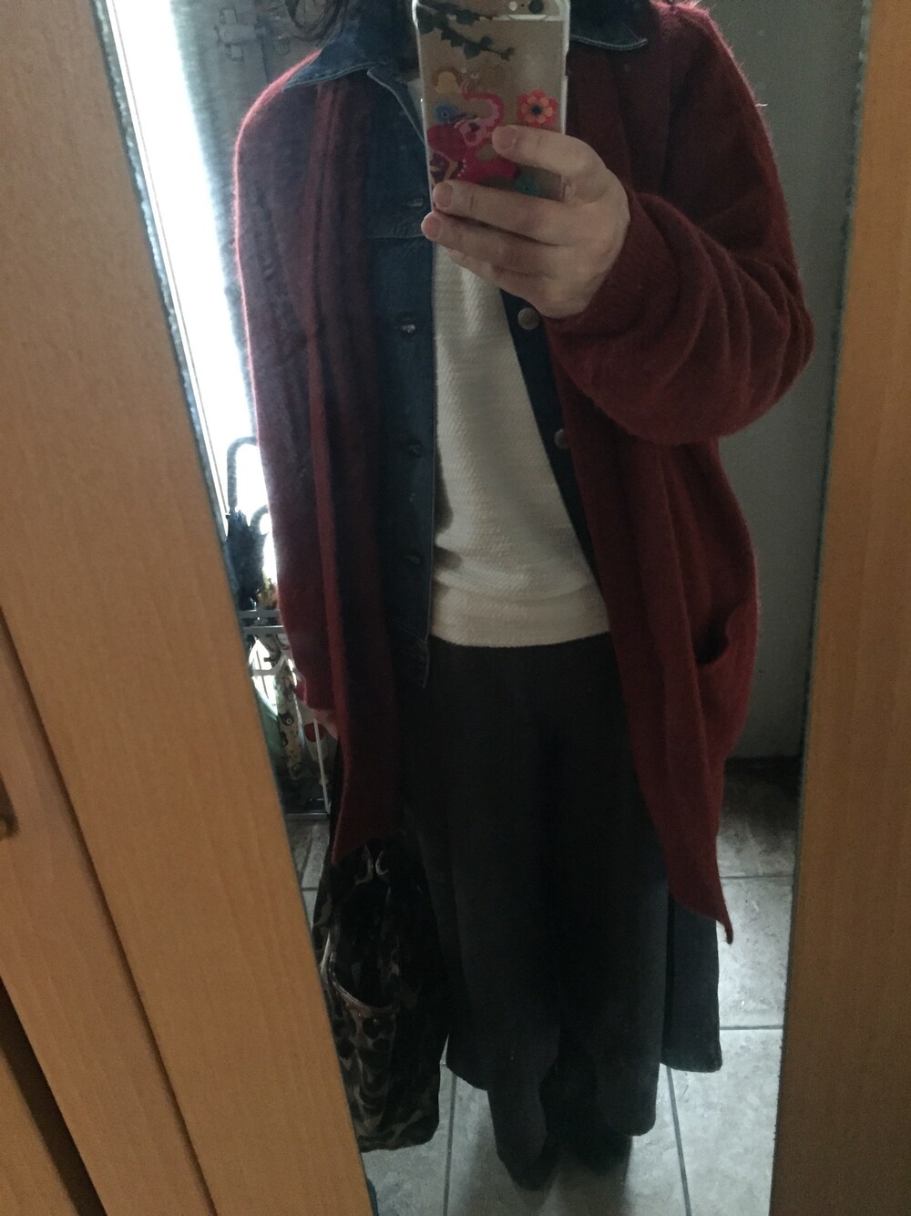 今朝は思い切って脱コートコーデ✌️ 中にHYKEのデニムジャケット 外にロングカーディガンを。 バッグも軽いものに変えようと思ってて 忘れた💧 今月は卒業を控えているので ちょっとバタバタの予定😅
