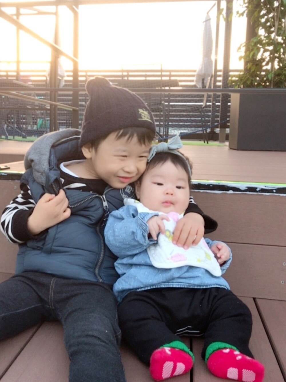 4歳のお兄ちゃんともうすぐ5カ月の妹。 少し前の写真ですが。✌︎ . だいぶしっかりしてきて、毎日の成長が 嬉しくもさみしいです😭😭 男の子も楽しいですが、女の子の服や ヘアアクセをみるのが今一番の楽しみです♡