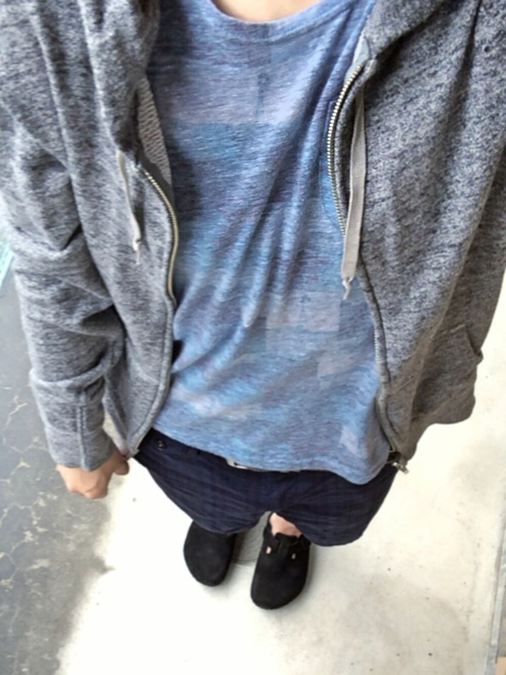 雨の日は濡れるから憂鬱だー パーカー:Nハリウッド カットソー:STUDIOUS ショーツ:BEAMS サンダル:ビルケンシュトック