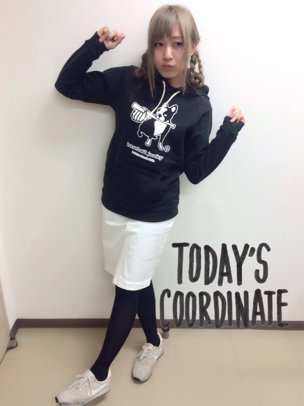 ベースボールジャンキーのパーカーに白のタイトスカート♥︎ オープン戦が待ちきれないベースボールファッション⚾︎ミ