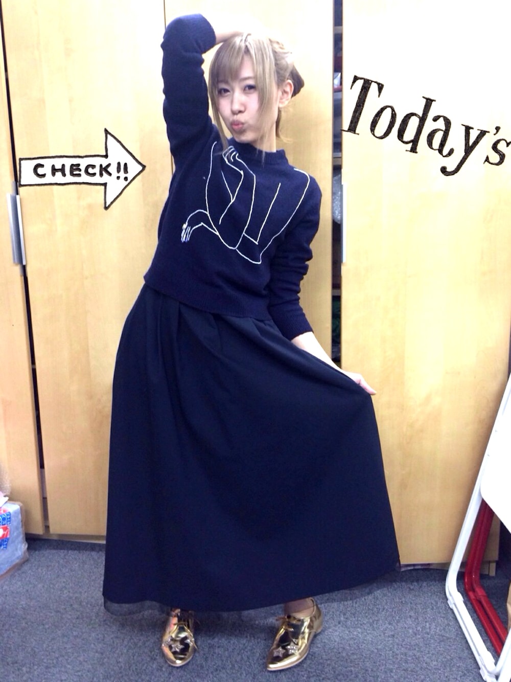 ゴールドの靴を事務所の社長に褒められました♥︎ ゴールドってやっぱり神アツ!!!!!!! 身につければテンション上がるよね♪ 肘付きニットはお気に入り♥︎ 腕が4本になるんだよ!!! これまた神アツー笑