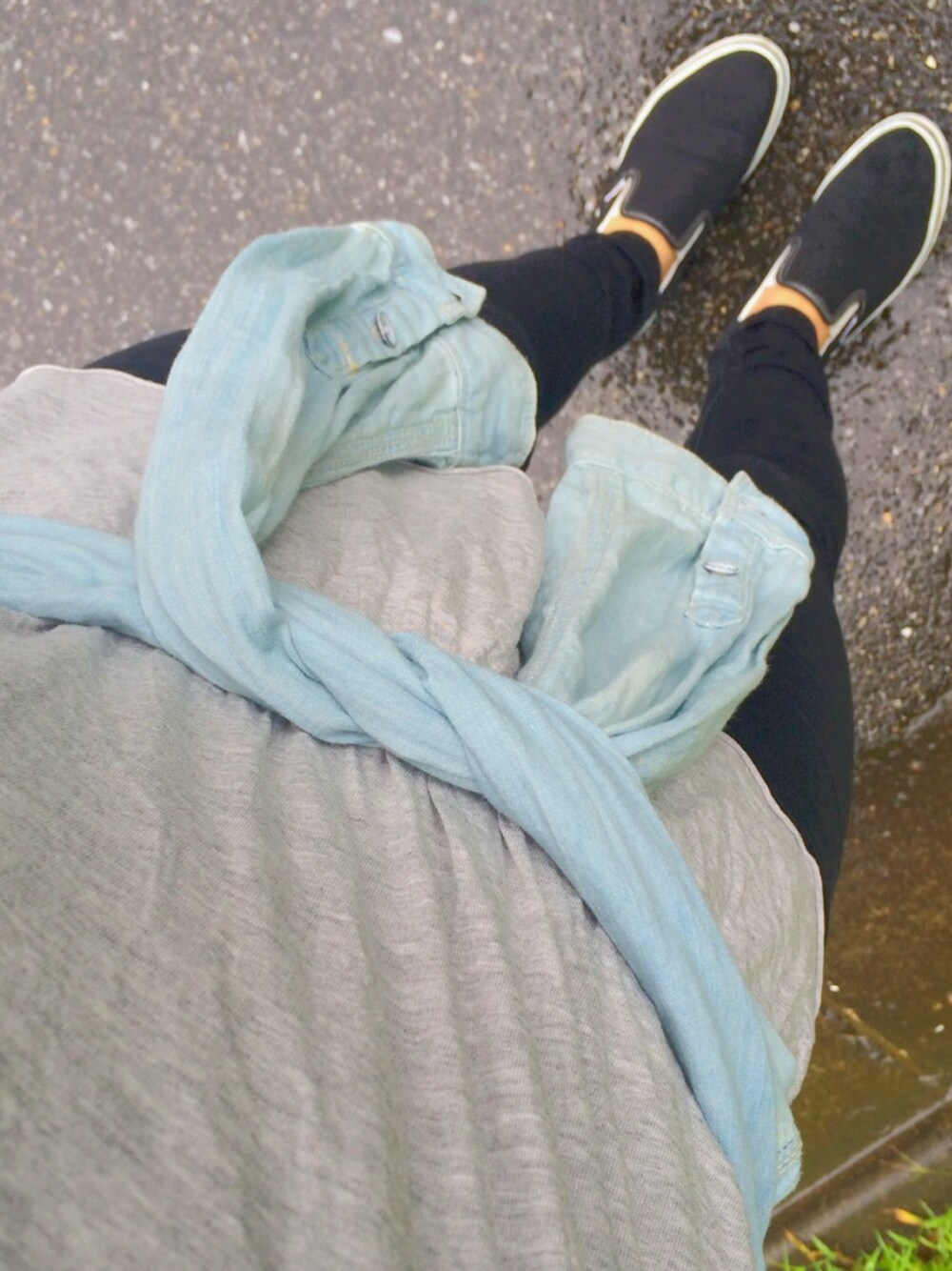雨続き… 今日もグレーTシャツに黒パンのシンプルコーデ♪