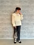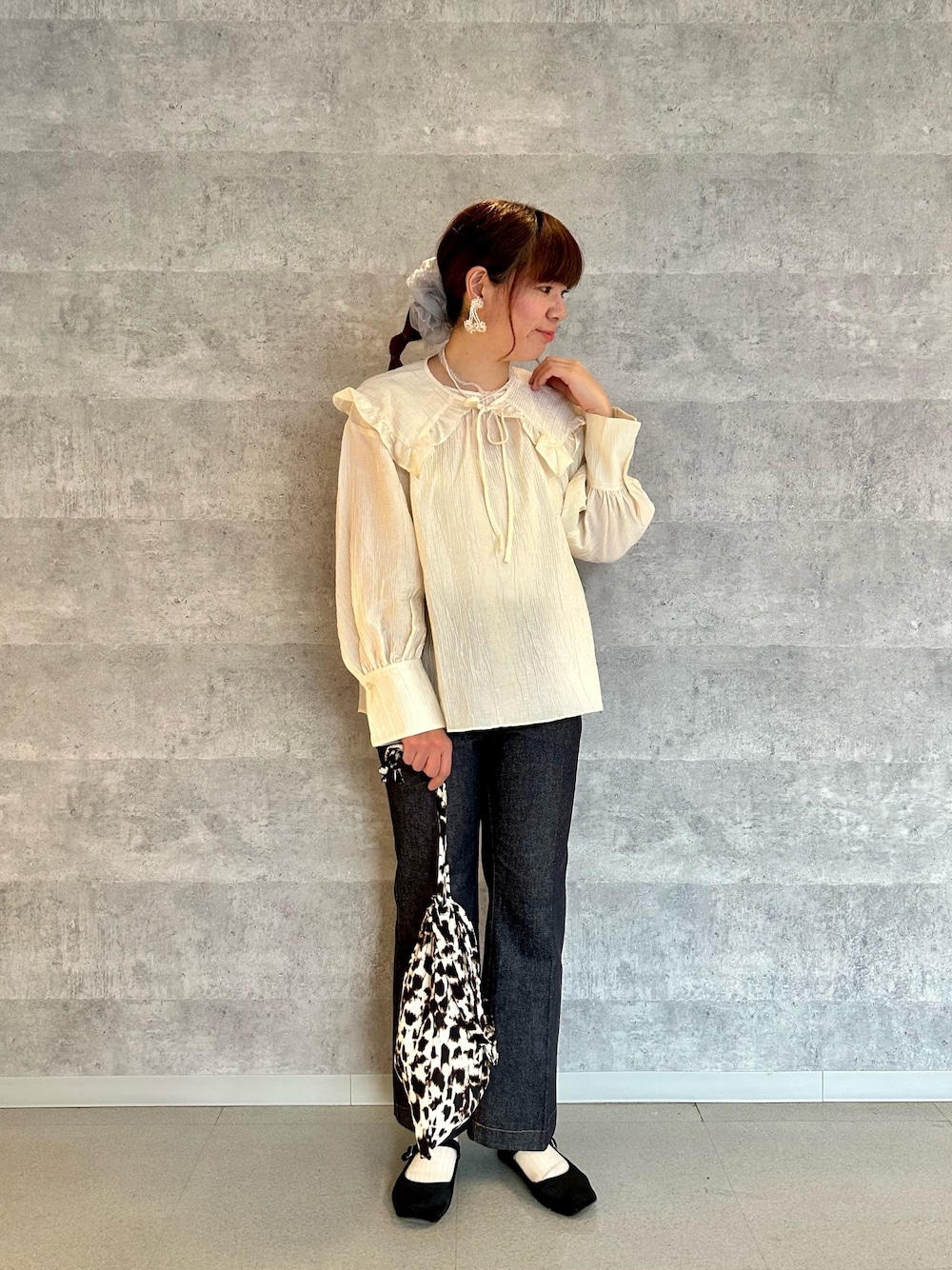 2way BIG衿ブラウスは大きめの衿が可愛く 寒い日はニットやスウェットとのレイヤードスタイルでも活躍しそうです◎ 衿が取り外し出来るのでベーシックなスタイリングが好きな方にもおすすめです* デニムスラックスフレアパンツは 普段38サイズを履きますが、最初はサイズがきついかな?と思いましたが履いていくうちに少しずつ楽になってきたので、生地の馴染みは良いかもです*