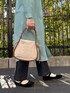 ゲバコのタイプライターバンドカラーワンピースは丈が長すぎないので、小柄な方も挑戦しやすい1枚* サイズも少しゆったりしているので羽織でも使えそうです◎