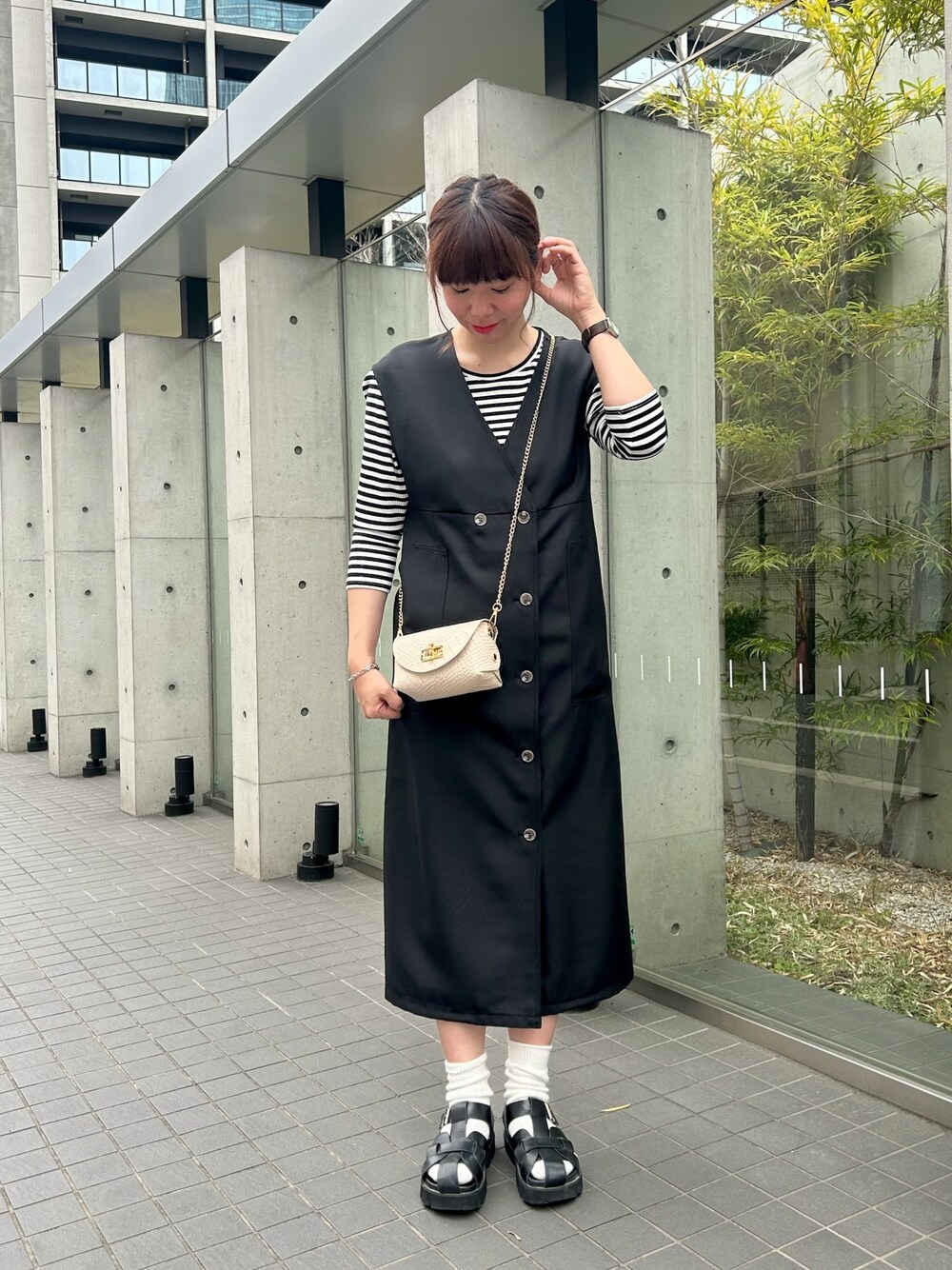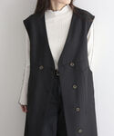 リネンライクジャンスカを使ってモノトーンにまとめてみました* ジャンスカは店頭でも人気で ジレとしても使えるので着回しの幅が広がりそうです◎