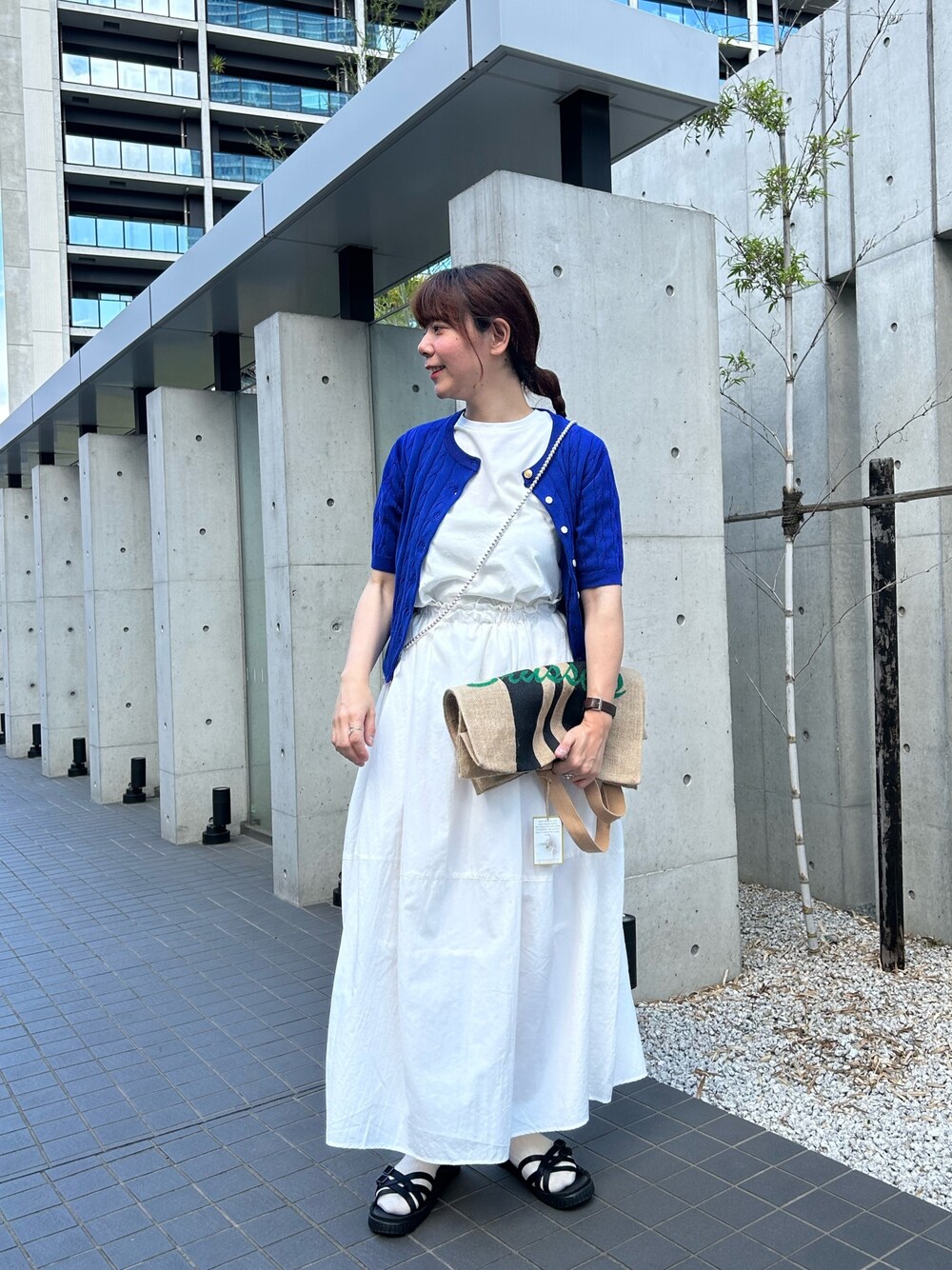 ホワイトコーデに差し色を合わせてみました* ドッキングワンピースは1枚でもコーディネートが決まるのも嬉しいポイント。 ウエストのドローコードはかなりサイズの調整が効きます◎ Tシャツ部分はサラッとしてるので夏の暑い日にも使えそうです♩
